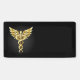 Símbolos de caduceo poligonales dorados sobre fondo negro aislado. Símbolo de medicina de baja poli.