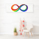 Símbolo claro de infinito de capas plásticas de colores saturados rojo, amarillo, verde, turquesa, azul y violeta sobre fondo blanco.