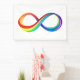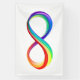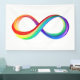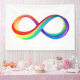 Símbolo claro de infinito de capas plásticas de colores saturados rojo, amarillo, verde, turquesa, azul y violeta sobre fondo blanco.