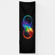 Símbolo de infinito dibujado artísticamente con una hermosa pluma arco iris sobre fondo blanco. Estilo tatuaje.