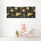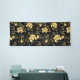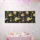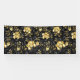 Patrón incomparable con orquídeas negras y doradas, ricamente decoradas con ramas negras de eucalipto y delicadas ramitas de pistacho de joyas sobre fondo negro. Orquídea de joyería de oro.