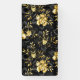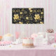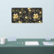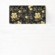 Patrón incomparable con orquídeas negras y doradas, ricamente decoradas con ramas negras de eucalipto y delicadas ramitas de pistacho de joyas sobre fondo negro. Orquídea de joyería de oro.