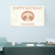 This adorable birthday banner design features the sweet Slumberkins Sloth character centered in a clean, minimal layout that feels warm, cozy, and perfectly kid-friendly. The sloth’s gentle expression is highlighted in soft blush and warm neutral tones, creating a calming focal point against the light background. The classic “Happy Birthday” message paired with a customizable name keeps the design personal while maintaining a simple, modern look that’s easy to style. Ideal for baby birthdays, toddler celebrations, or animal-themed parties, this banner adds a charming Slumberkins touch and creates a soft, welcoming backdrop for photos and party décor.