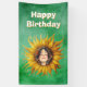 This banner or backdrop is done in shades of green with the smiling face ofa girl with brown hair in the middle of a big yellow fancy sunflower. Customise your text with the template.