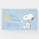 Welcome guests to your celestial celebration with this large, charming Peanuts Snoopy and Woodstock baby shower sign. Featuring the sketch-style duo of Snoopy embracing Woodstock beneath a bright crescent moon and twinkling stars, the sign sets a dreamy and nostalgic tone. The soft light blue background beautifully highlights the script text "Over the Moon." This product is fully customizable, allowing you to easily add the honoree's name, event date, or a custom welcome message, making it the perfect piece of statement decor for a baby boy or gender-neutral shower.