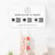 Banner de negocios de medios sociales con el logo de tu empresa, códigos QR para que los clientes te sigan en las plataformas de medios sociales y detalles de contacto.