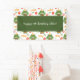 Añada un toque personalizado a la fiesta de cumpleaños de su hijo con este adorable cartel fiesta personalizado. La pancarta tiene un patrón de rana verde usando un gorra de cumpleaños y junto a un globo y pastel. También está la sonrisa de texto y el espacio para un mensaje personalizado, como el feliz cumpleaños y el nombre y edad de tu pequeña. ¡Hace una adición cuidadosa a un fiesta para un muchacho o chica muy especial!