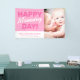 Cute mom birthday banner featuring a pink & white color scheme, a family photo, the words "Happy Mommy Day!" and a personalized message, and your names.