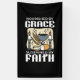 Celebrate faith with this meaningful 'Nourished by Grace, Sustained by Faith' design featuring communion elements like a chalice, bread, wheat, and candles. Perfect for Christian gifts, apparel, and home decor.