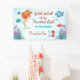 Sumérjase en el mundo de las sirenas con nuestro delicioso banner Mermaid Bash, diseñado exclusivamente para su segundo cumpleaños! El encantador ilustracion de una dulce sirena naranja en un colorido mundo submarino prepara el escenario para una celebración inolvidable. Personalice el cartel agregando el nombre de su hijo al texto "Nuestra Sirenita es", convirtiéndolo en un recuerdo preciado. La pegadiza y legible frase 'Splish Splash it's a Mermaid Bash' agrega un toque de capricho al fiesta, creando una atmósfera mágica para que todos la disfruten".