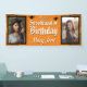 Decorar con esta pancarta de cumpleaños de la foto de Halloween. Personaliza con su nombre y dos fotos. Esta pancarta naranja y negro espeluznante presenta una araña adorable y telaraña con fuentes espeluznantes de Halloween.