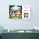 An adorable baby's first birthday banner with a forest animal theme. A cute raccoon and squirrel holding a blackberry cupcake wearing birthday hats. Just add your baby's photo in the personalize area.
