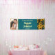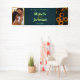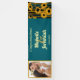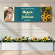 Welcome guests in grand style with this bold modern teal blue and gold sunflower wedding banner. This striking 8x2.5 foot design features artistic sunflower silhouettes with integrated teal accents and luxe striped patterns, plus clean modern typography displaying your names and wedding date. Simply upload your favorite engagement or pre-wedding photo to create a dramatic focal point for your celebration.