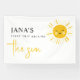 Haga que el primer cumpleaños de su hijo sea inolvidable con nuestro cartel de cumpleaños "Sunshine is Turning One". Con deliciosos gráficos solares, este banner aporta un elemento luminoso y alegre a su celebración temática. Perfecto para pasar el rato en la sala fiesta, da la tónica de una celebración alegre. ¡Pide que le agregues un toque festivo a tu pequeño día especial!