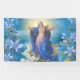 Con un personalizado diseñado una imagen religiosa católica tradicional de la Asunción de la Santísima Virgen María con el ángel y acentuado con flores azules a cada lado.