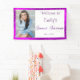 Hermoso banner con "Sweet Sixteen" realizado en un encantador efecto de purpurina morada. Las estrellas falsas brillantes acentúan tu foto y se pueden cambiar de tamaño y mover según tus necesidades. Personaliza este hermoso banner para adaptarlo a tu evento u ocasión. Agrega tu foto y saludo favoritos. Perfecto para Sweet Sixteen, Bat Mitzvah y Quinceañera.