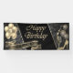 Esta imagen presenta tacones altos purpurinas dorados, globos y vidrio de vino sobre damasco negro.