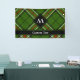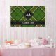 Diseño de tartán verde, negro, rojo y blanco. Patrón sin fisuras. Texto personalizado y monograma.