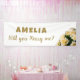¿Te casarás conmigo, cartel de la propuesta romántica rosa amarillo? ¿Quieres casarte conmigo en escritura blanca moderna con rosas amarillas? Añade tu nombre.