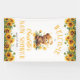Presentamos una plantilla de diseño encantadora y neutral en género que seguramente encantará a cualquier madre. Este diseño adorable se caracteriza por un bonito oso de peluche acuarela que se encuentra entre un campo de girasoles, rodeado de toques de girasol de fondo y de techo. Con un fondo blanco resplandeciente, el diseño desprende una sensación de alegría, lo que lo convierte en la elección perfecta para la ducha o la rociada de un bebé. Tanto si planeas una ducha de bebé como una rociada para un chica o un niño, este diseño seguro marcará el tono adecuado para un día de celebración y alegría. En la parte trasera hay un ramo de girasoles sobre un fondo amarillo dorado claro con puntos de polka en tonos blanco a dorado y degradados. La pieza central del diseño es un oso de peluche adorable, representado en las delicadas acuarelas que le dan un aire suave y caprichoso. Sentado entre un campo de girasoles soleados amarillos, el oso está rodeado de flores de girasol de arriba a abajo, creando un marco encantador y llamativo para los detalles de tu evento.