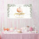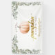 Crea un encantador punto focal de otoño con este banner de baby shower "Un pequeño calabacín está en camino", que presenta una cálida calabaza de acuarela, vegetación otoñal y letras elegantes de estilo dorado. Este telón de fondo es perfecto para montar la mesa de postres, área de fotos o exhibición de regalos, agregando un toque estacional acogedor a tu celebración. Personaliza con el nombre de la futura mamá y la fecha de la ducha para un recuerdo significativo que completa hermosamente tu decoración de baby shower de otoño.