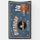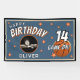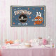 Estandarte de telón de fondo para fotos de cumpleaños de baloncesto. Un estandarte moderno de celebración de cumpleaños personalizado con un balón de baloncesto, nombre, edad y foto. El fondo es azul con estrellas. Puedes cambiar cualquier texto en el estandarte.