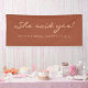 Banner rústico de terracota con ducha de novia con texto en un alfabeto moderno, "Ella dijo que sí". Personalizado con el nombre de la futura novia y su fecha de ducha.