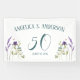 Texto luminoso Verde azulado Personalizado Color de agua Floral Banner .Summery Watercolor Púrpura y Azul flores silvestres, mariposas y libélula junto con el texto de su personalizable. Fiesta de jardín con una temática Cohesiva "50 y todavía en flor". 50 y medio camino en la vida. Simbolizar una edad madura, segura y hermosa, una fase de la vida con tantas oportunidades. Mantener una actitud ligera y positiva hacia la vida. Vea toda la colección cohesiva con productos con el mismo tema de diseño y Disfrute de la planificación de una Celebración para recordar.