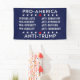 Pancarta política anti-Trump, con las palabras 'pro-América' con sus personalizados pro-listas y anti-listas y las palabras 'anti-Trump'.