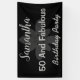 Un texto plateado "50 And Fabulous" con una flor de plata 3d sobre un diseño de fondo negro, para personalizar con el nombre relevante.