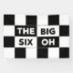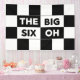 60th birthday party banner features a bold black and white checkered pattern with the words "The Big Six Oh" in alternating white on black and black on white text.