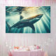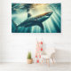 Lona Tiburón en el mar azul profundo y la luz del sol