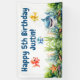 Haz un gran impacto en el día especial de tu hijo con nuestro Banner de Cumpleaños de Tiburón Feliz Bajo el Mar. Con un tiburón amistoso, peces coloridos, coral vibrante y un mensaje de cumpleaños personalizado, este adorable banner transforma instantáneamente tu espacio de fiesta en una aventura submarina. Impreso en material duradero, es perfecto para celebraciones interiores o exteriores y hace un divertido fondo para fotos inolvidables de cumpleaños.