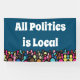 se cree que la política es en gran medida un proceso nacional de gobierno, que resulta en la elección del representante de los Estados Unidos y de senadores al Congreso y al presidente de los Estados Unidos. Sin embargo, hay un argumento de que toda política es realmente local. Eso significa que incluso los funcionarios electos más importantes deben apelar a los votantes en su país por los intereses de importancia personal de esos votantes si desean permanecer en el poder. Es otra versión de "¿Qué hay en eso para mí?".