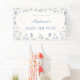 Celebrate the arrival of your little one in timeless style with this dusty blue Toile de Jouy baby shower "Welcome" banner. Inspired by classic French countryside prints, this elegant design features hand-drawn illustrations of vintage baby essentials — a rocking horse, stroller, baby bottle, wash basin, socks, bow, and delicate florals — all arranged in a soft and charming pattern.