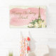 Banner fiesta de la Torre Eiffel / París "Feliz cumpleaños", lindo y giradamente rosa y purpurinoso, personalizado con tu nombre.