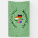 Estandarte personalizado para tu fiesta del Día de San Patricio con las banderas de Alemania, Irlanda y Estados Unidos de América (EE. UU.) en las hojas de este trébol, diseñado para celebrar el Día de San Patricio, el 4 de julio y el Oktoberfest. Se asienta sobre un fondo de cuadrados ondulados de color verde claro. Arriba están las palabras TRES CULTURAS. Abajo, UNO TUNOMBRE. Las palabras están en verde oscuro, estilo celta, letras circulares. Agrega un nombre en el lugar apropiado para un aspecto personalizado.