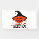 Celebra Halloween de manera espeluznante con esta obra de arte de la Trata de Calabaza con una calabaza super linda con un hacha de daga y un fantasma. La obra de arte lleva un gorra, añadiendo un aspecto de misterio a la figura fantasmal.