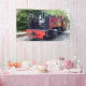 Un diseño fotográfico de un tren de vapor bellamente restaurado.