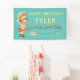 Pequeño chico vintage con tocino nativo y monos sosteniendo un capchador de ensueño con adorno de flecha. Cambie los colores de las banderas y fuentes para que coincidan con el evento.