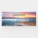 Banner de boda moderno y elegante. Hermosa playa, puesta de sol, fotografía de olas oceánicas. Perfecto para recién casados. Puedes personalizarlo con los nombres y fechas de la novia y el novio.