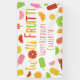 con la frase "twotti fruitti" con cítricos de pomelo incorporado en el diseño que está rodeado de rodajas de cítricos incluyendo pomelo, lima, limón, limón rosa y naranja, así como pops de hielo.
