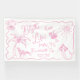 Último brindis en la costa Estandarte para despedida de soltera. Cuenta con dibujos funky y caprichosos hechos a mano de una escena de playa con sirena, palmera, sol, concha de almeja con perla, silla de playa y bebida tropical. Todo en hermosos colores rosados. Para hacer más cambios, vaya a Personalizar esta plantilla. En la parte inferior verás "¿Quieres personalizar aún más este diseño? Haga clic en EDITAR utilizando la herramienta de diseño. Desde allí puede cambiar algunas de las fuentes y algunos colores, mover las cosas o eliminar lo que necesite. Este está configurado como 6x10.