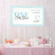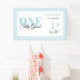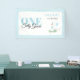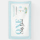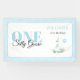 Una deliciosa pancarta floral para el primer cumpleaños de un niño muestra una escena encantadora: una oca, con un gorra de cumpleaños azul y corbata de arco, sentada en un vibrante ramo de flores. El ganso, una "gallina de los huevos" de hecho, tiene un globo azul que muestra el número "1" flotando suavemente de su cola. Un suave borde blanco con bordes redondeados rodea el diseño caprichoso, que se ve reforzado por un divertido borde de gingham azul y blanco y la entrañable frase "Una oca tonta.