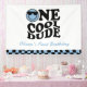 Un tipo genial sonrisa azul ondulada cara niño primer cumpleaños.