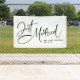 Una pancarta elegante y divertida de recién casados para el coche de escapada de su boda.
