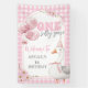 ¡Celebra el gran hito de tu pequeña con este adorable tema de primer cumpleaños "One Silly Goose"! Con una preciosa oca acuática en un gorra fiesta, globos rosados suaves y fondo de gingham dulce, este diseño lúdico es perfecto para la fiesta de primer cumpleaños de tu bebé. Acentuado con delicados florales y fuentes de escritura modernas, establece el tono para una celebración divertida y caprichosa. Personalice con los detalles de su fiesta