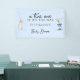 Cartel de bienvenida de Martini Baby Shower de fondo azul - Una simple bandera de bienvenida a la ducha de bebé de color agua para un niño con ducha de bebé. Con caligrafía de guión y letra de bloque elegante. Un ilustracion acuático de un martini sucio con dos aceitunas y un arco azul coqueta y un ilustracion acuarela de una botella de bebe adornan el centro. Edite esta plantilla de señalización de bienvenida para la ducha bebé con sus propios detalles de evento. Todo el texto es editable.
