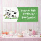 Nuestra linda vaca friesia de ordeño en blanco y negro está en una pradera de hierba verde comiendo margaritas amarillas. ¡Mucha diversión bovina!
