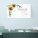 Banner de boda Sunflower Eucalyptus Leaves con un diseño moderno de fondo blanco. Redestinar fácilmente esto a otros eventos especiales